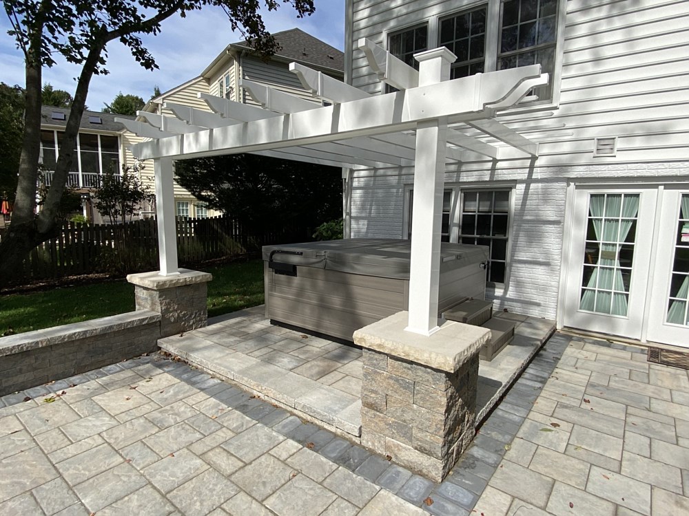 Explore some of the most beautiful hardscapes we have created over the decades. Our experienced and talented hardscape designers and installers can transform your outdoor living area into a beautiful and functional space perfect for enjoying time with family and friends, intimate dinners, or quiet time to enjoy the outdoors. Check our hardscapes gallery that includes patios, decks, outdoor kitchens, paved walkways, water features, fire pits, and seating examples for your inspiration. We specialize in creating complete landscape designs that include hardscapes that perfectly complement the greenscapes. Each design element in a hardscape feature is planned for an aesthetic and/or functional purpose while considering your yard's size and your needs.Click on the images below to view a larger display.